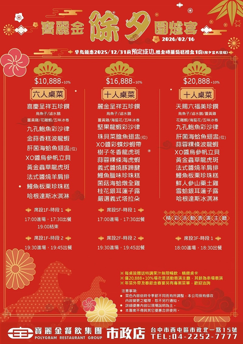 ※ 年菜外帶及春節走春宴另有專案菜單,歡迎洽詢